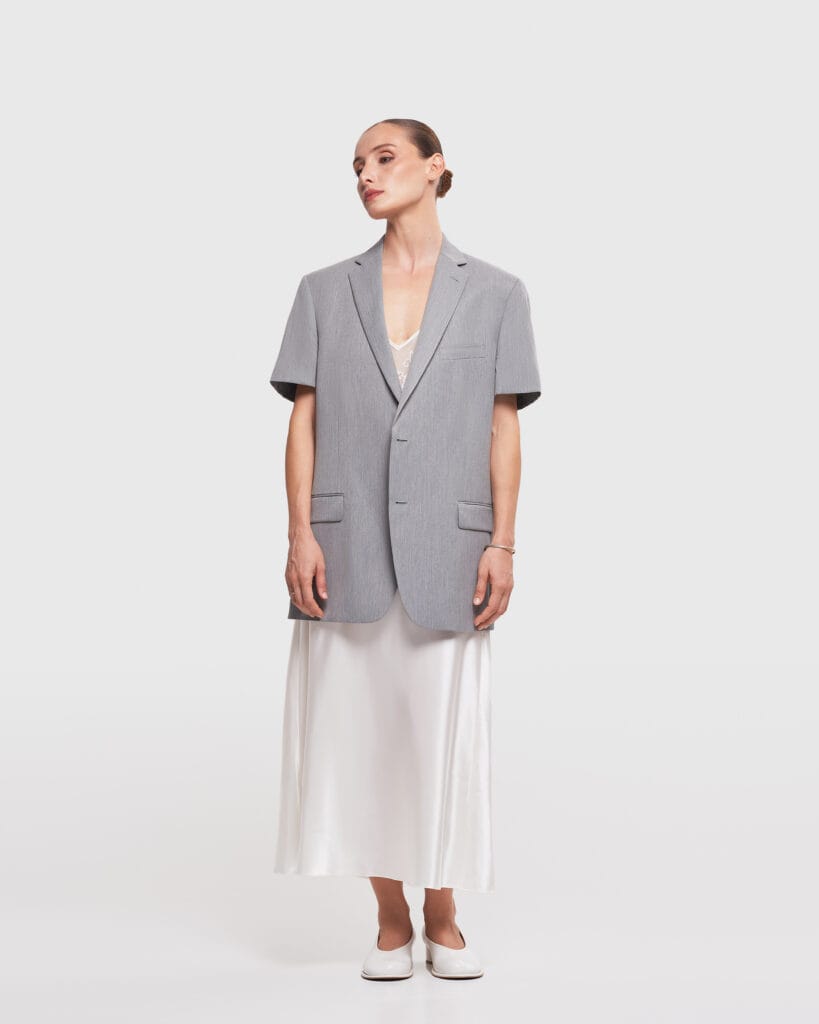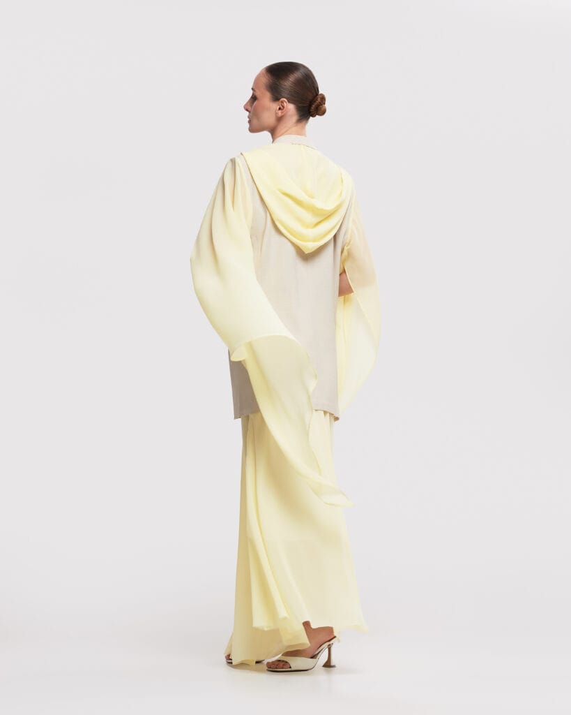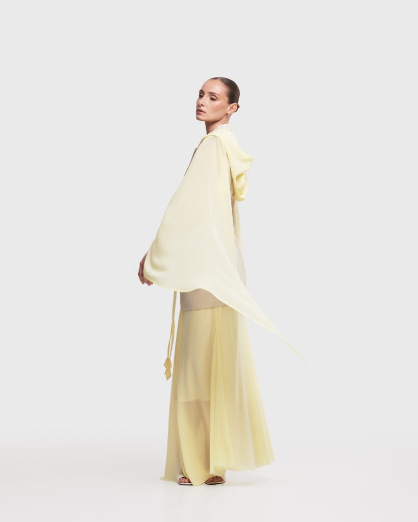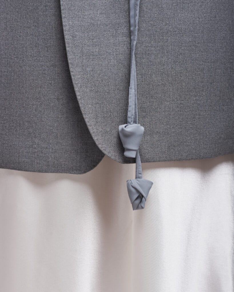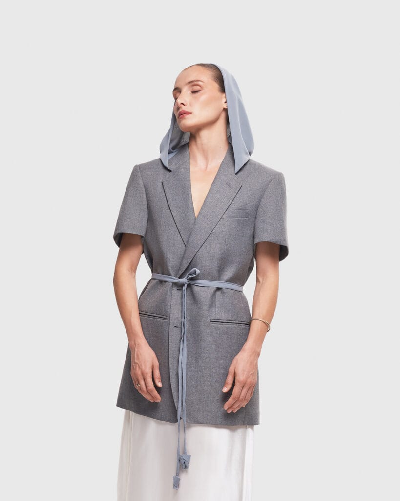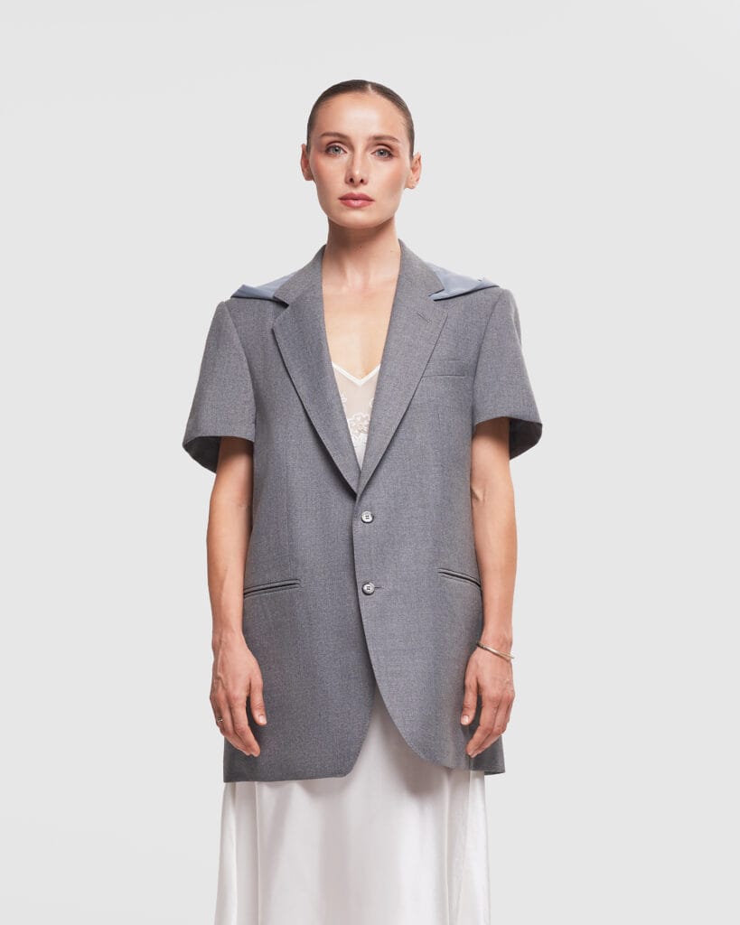 Meticulously deconstructing each jacket, we replace the traditional sleeves with cascading layers of ultra-light chiffon.