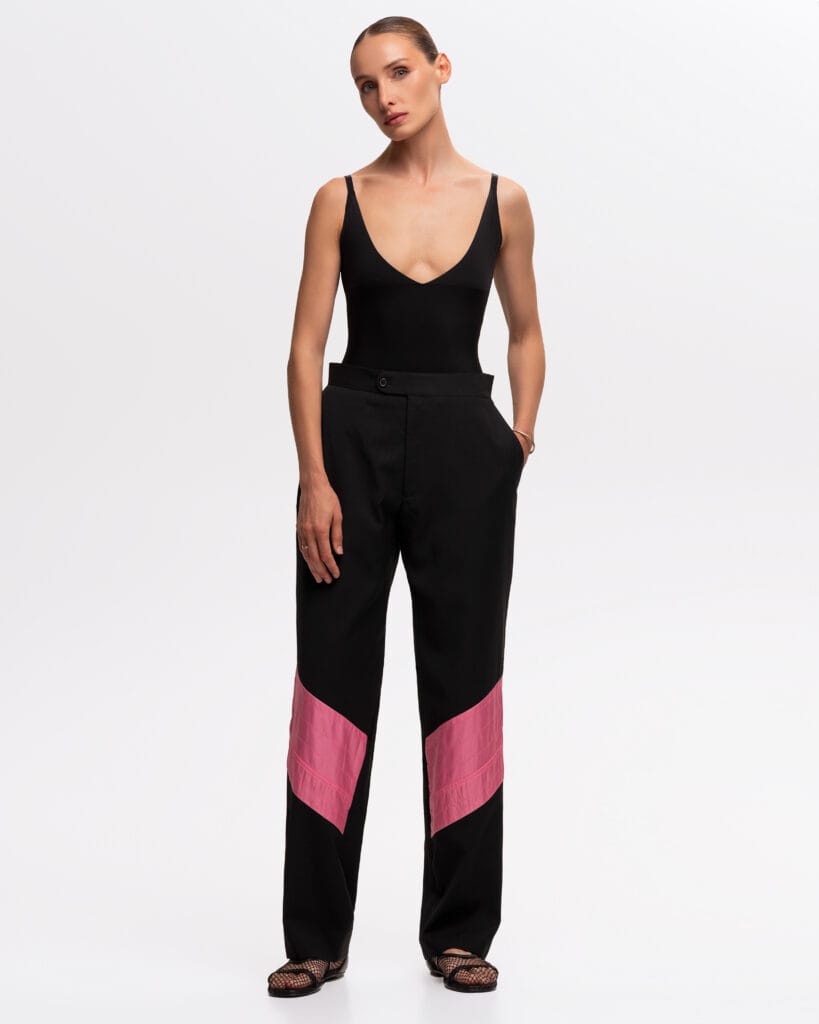 Made out of classic trousers and sports ware. Item made in zerowaste technique. It’s crafted from 100% vintage matearials, carefully hand-sourced in Italy.